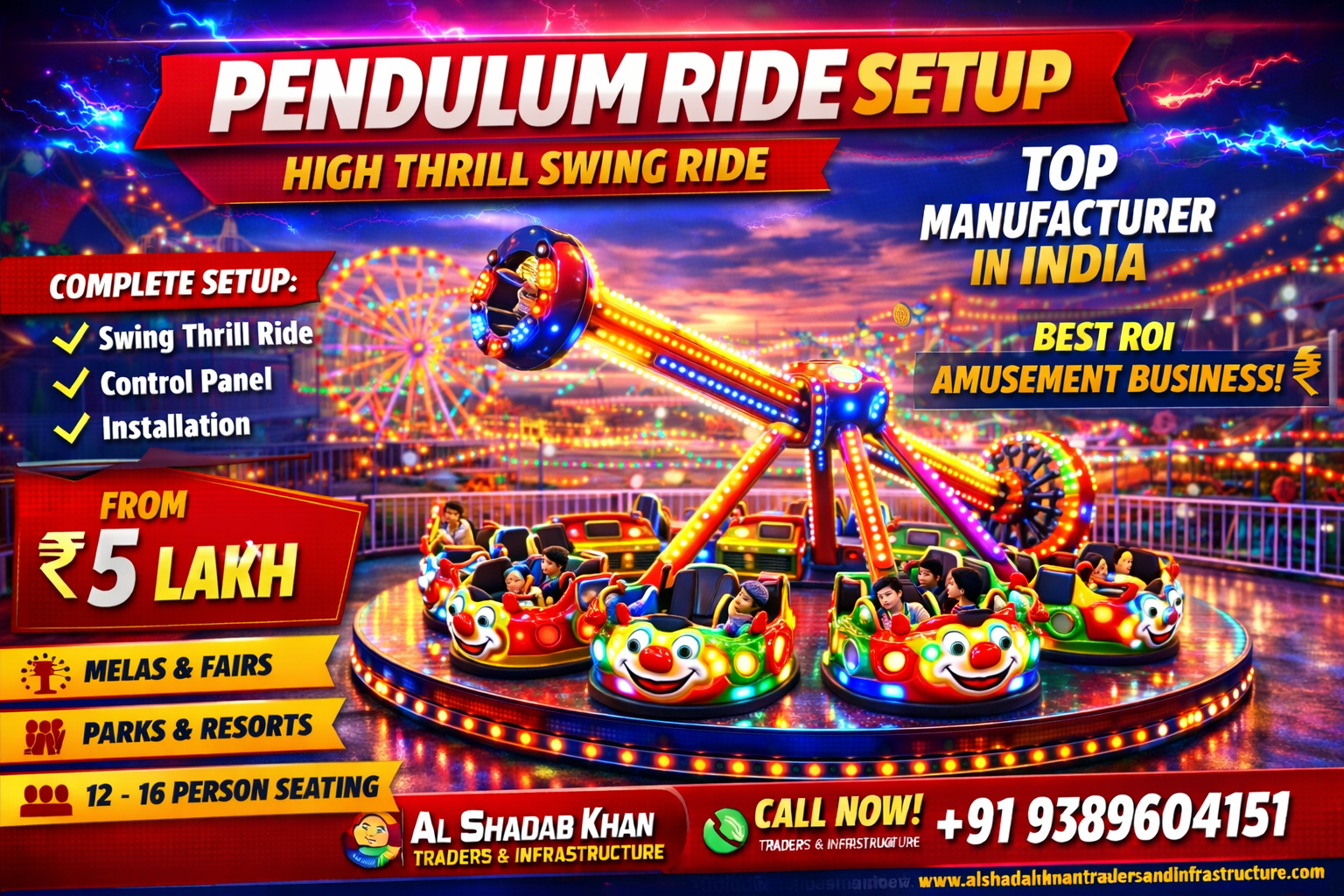 Kya aap ek high-thrill amusement ride dhund rahe hain jo aapke amusement park ya event business ko next level pe le ja sake? Pendulum Ride ek powerful swing thrill ride hai jo high-speed motion aur height ke saath users ko exciting experience deta hai. Ye ride parks, fairs, exhibitions aur resorts ke liye perfect attraction hai. Al Shadab Khan Traders & Infrastructure India ki World No.1 & Top 1 company hai jo premium quality Pendulum Ride manufacture karti hai with strong structure, advanced engineering aur high safety system.Why Pendulum Ride is Trending in 2026?
